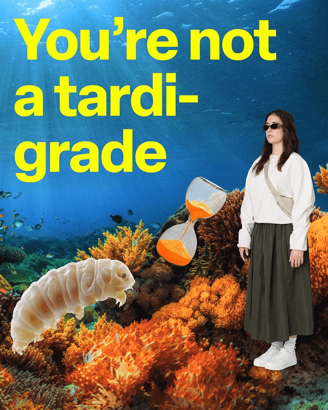 While humans struggle to sustain these habits, some animals naturally thrive under extreme conditions. Certain species can go days without sleep, others live entirely in darkness, and some have even survived the planet’s greatest crises. This contrast became the foundation of our campaign for ISMÉ, an initiative for student mental health.